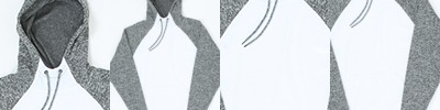 7 oz.; 100% spun polyester fleece fabric; Charcoal fleck body; Solid color fleece sleeves and hood; Self-fabric thumb-hole cuffs; High neckline;