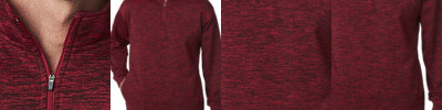 7 oz., 100% spun polyester fleck fleece; Contrast zipper and front pouch pocket; Thumbholes on cuffs;