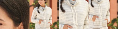 • Stripe pattern lined cowl neck