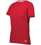 The Russell Athletic(r) Women’s Essential Tee delivers the comfort, style, and performance to fit your active lifestyle. This feminine fit short sleeve T-shirt will keep you dry as you sweat featuring moisture-wicking fabric, odor protection, UPF 30+ protection, and soft spun yarn making this T-shirt extra comfortable. It offers the comfort of cotton combined with the benefits of performance.